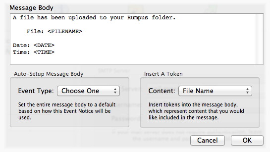 Of course, the common parent folder could be the top level FTP Root folder, so that all Rumpus users would be eligible for this notification. Or, you could set up the file posted notifications for several different groups of users, so not all notified users have to share a single common parent content area.